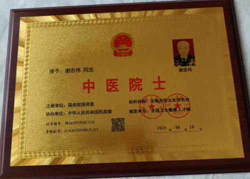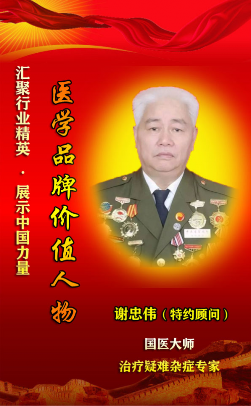 谢忠伟,四川省南部县大河镇,1947年9月出生,1963年入伍,中共党员,世界名医,世界名人,美国密西西比学院荣誉博士,香港国际医学科学研究院教授,终身医学博士,世界中医药研究院终身教授,香港国际皇家社会科学院院士,香港皇室文化研究会授予终身贵族爵位。