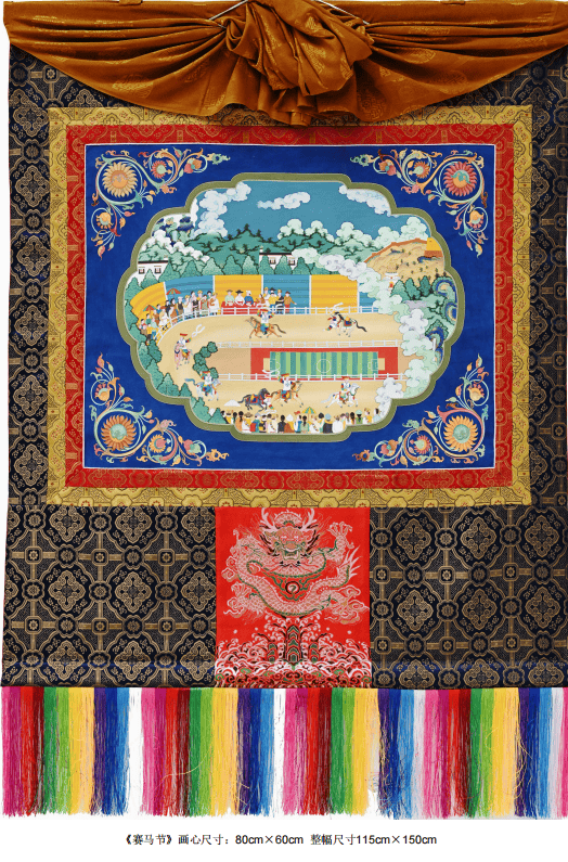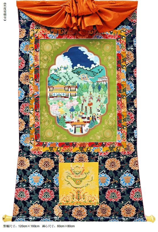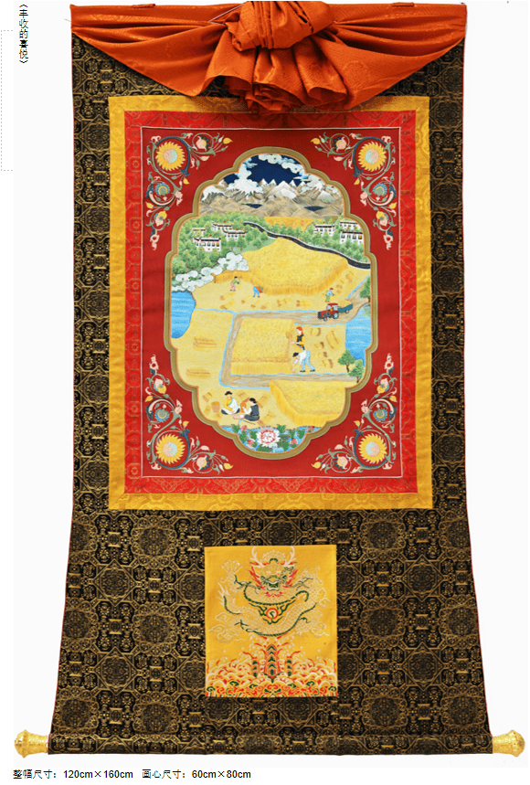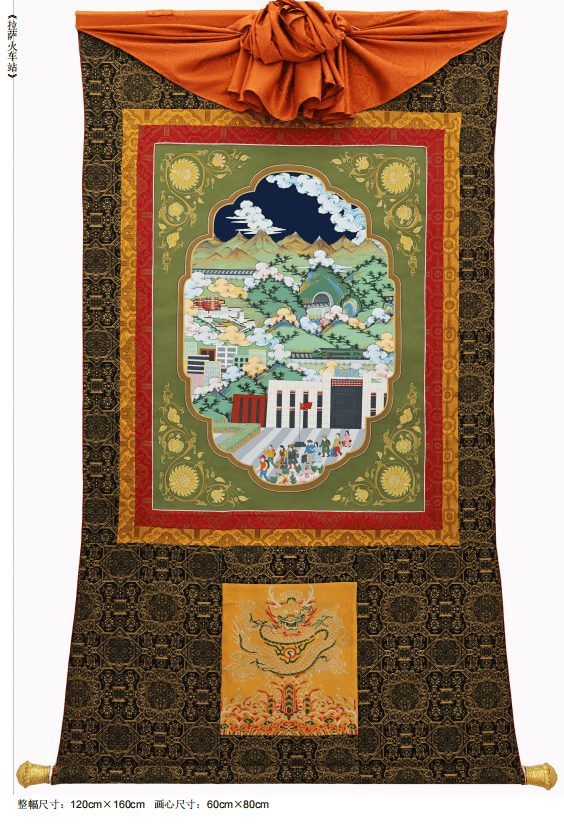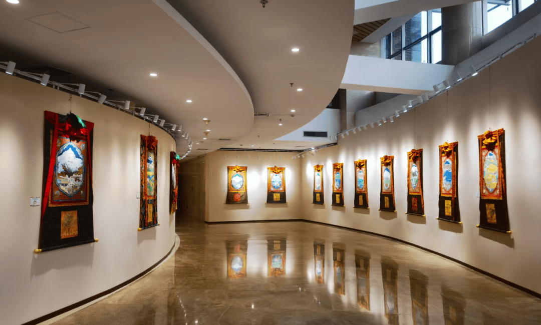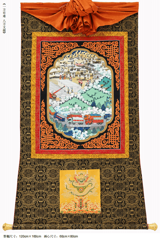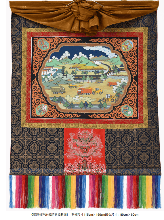 本次展览列入中国文联文艺援藏协作机制2025年工作计划,是西藏自治区党委宣传部2025年文艺创作扶持的一项重点活动。展出的唐卡作品由西藏高山文化发展基金会主导设计创作,特别邀请扎什伦布寺勉唐派唐卡画师非遗传承人罗布次仁老师精心绘制,历时三年打磨而成。作品以铸牢中华民族共同体意识为主线,聚焦民族团结、基础建设、科技发展、生态保护和乡村振兴等核心题材,以非遗传统与创新相结合的艺术形式,描绘西藏60年来喜人的变化和发展图景,既是向西藏自治区成立60周年献上的文艺贺礼,更是对“共建中华民族共同体、书写美丽西藏新篇章”的鲜活写照。