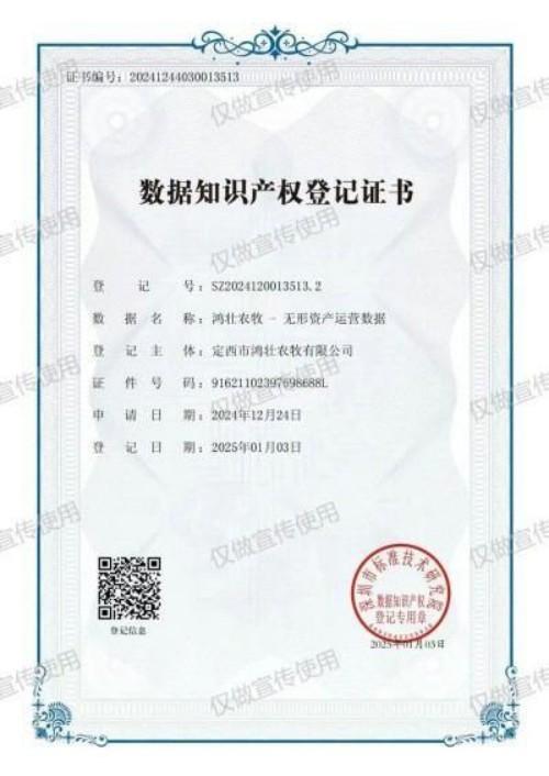 李杰深知,现代农业必须依靠科技赋能。他主动对接兰州大学、甘肃农业大学等科研院所,联合实施"肉羊高效育肥技术集成与示范"项目,累计获得发明专利4项,企业专利总数达21项。他创新推出"科技专家+种羊基地+合作企业+农户"模式,年均向农户提供优质种羊2000只以上,推广"六良"养殖标准,带动形成"小规模、大群体"养殖集群。2023年,"鸿壮羊肉"获国家绿色食品A级认证,成为定西市首个绿色认证养殖产品。
