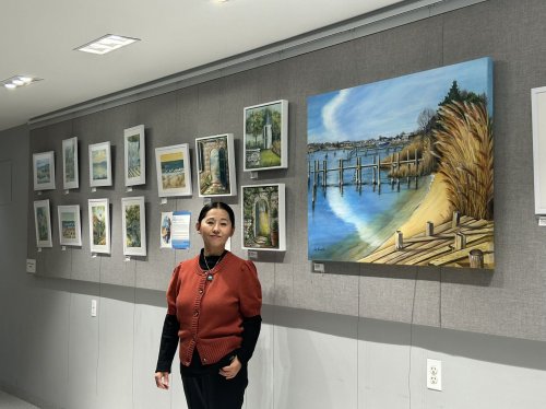 一方面,她深入研究西方艺术史,从印象派的光影变幻到抽象表现主义的情感宣泄,她汲取了丰富的营养,形成了坚实的绘画基础。另一方面,她从未放弃对中国传统文化的学习与传承。她研习中国书法,将书法的笔意与节奏融入到油画的笔触之中;她研究中国传统美学,将“气韵生动”、“天人合一”的思想贯穿于创作理念。这种双向的滋养,使她的作品既拥有西方艺术的现代性,又蕴含东方文化的深厚底蕴。