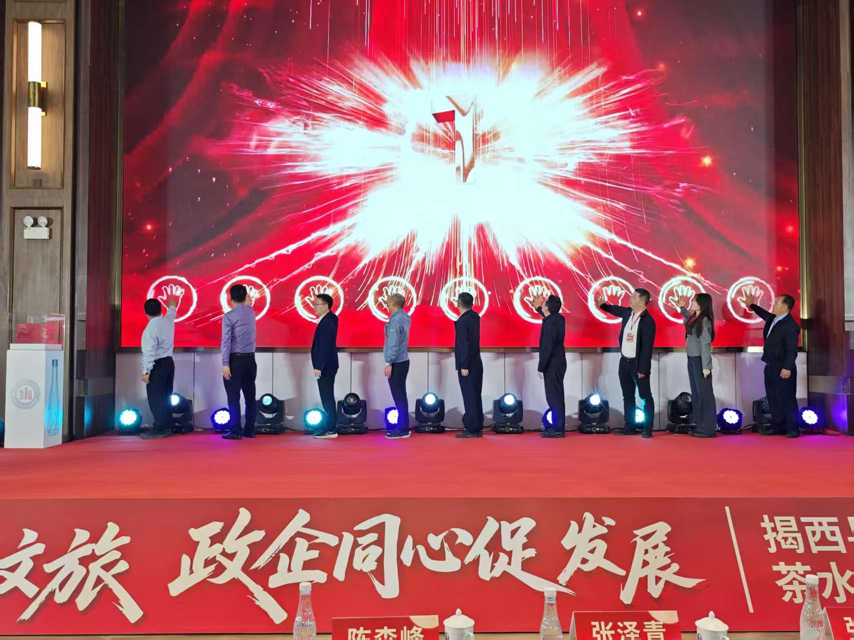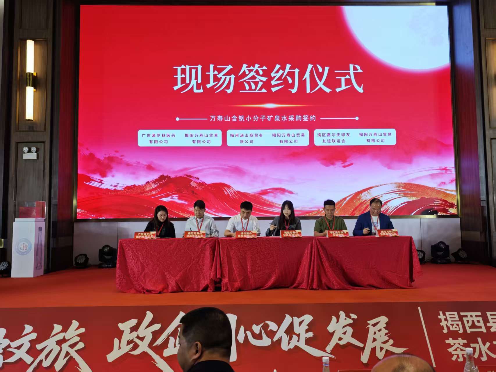 活动现场首先播放的宣传片《因茶兴业,因茶致富——揭西县茶叶省级现代农业产业园》,生动展现了揭西茶产业在“十五五”规划和“百县千镇万村高质量发展工程”推动下的发展成果。现场发布了“大洋红”茶叶、万寿山天然含钒超凡系列6.3L矿泉水三款新品,展现了揭西茶产业的创新成果。“大洋红”茶叶产自海拔800米以上高山,昼夜温差大、常年云雾滋养、富含20多种有益于身体健康的微量元素及营养成分的红黄壤等条件造就茶叶肥厚鲜爽的天然基底,同时,融合非遗炒青技艺与现代创新工艺,与省级科研所合作确保品质,兼具生态优势与匠心品质。万寿山天然含钒超凡系列6.3L矿泉水源自深层天然水源,富含多种人体所需矿物质,采用先进净化工艺,大容量和精美环保包装设计,兼顾了健康、实用和美观。