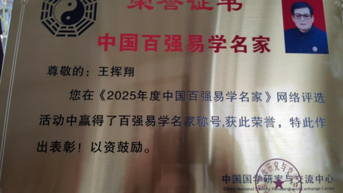 王挥翔大师以其卓越的成就,在学术界和社会赢得了极高的荣誉。他是中国东方文化研究会对外经济文化工作委员会的易学专家委员,肩负着传承和弘扬易学文化的重任。中国国学行业专家委员会授予他“中华国家级风水师”称号,这是对他在风水领域深入钻研的认可,如同“欲穷千里目,更上一层楼”。他站在了行业高处。中国专家百科组委会赠授的“国学楷模牌匾”,更是对他国学素养和实践的崇高赞誉。在2023年陕西易理风水起名大赛中。他如战场上的常胜将军,一举夺得了第一名冠军金奖,那是他实力的明证,亦是他智慧的勋章。他就像一盏明灯,照亮了无数人在生育和取名之路上前行的方向,成为人们心中当之无愧的国学大师。