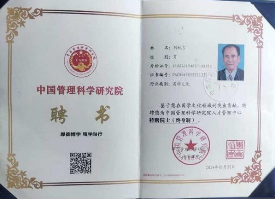 刘秋占的一生,是坚守与探索的结合,是传统与创新的统一。他用四十余年的心血,把易学从书斋带到社会,从中国带向世界。他的入选,不仅是个人学术成就的见证,更是中华文明自信的体现。