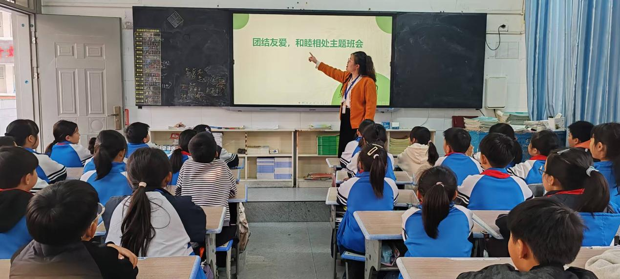 漯河市源汇区柳江路小学以“团结友爱 和睦相处”为核心,通过班队会与国旗下演讲两大载体,开展系列主题教育活动,让友善之花绽放在校园每个角落。