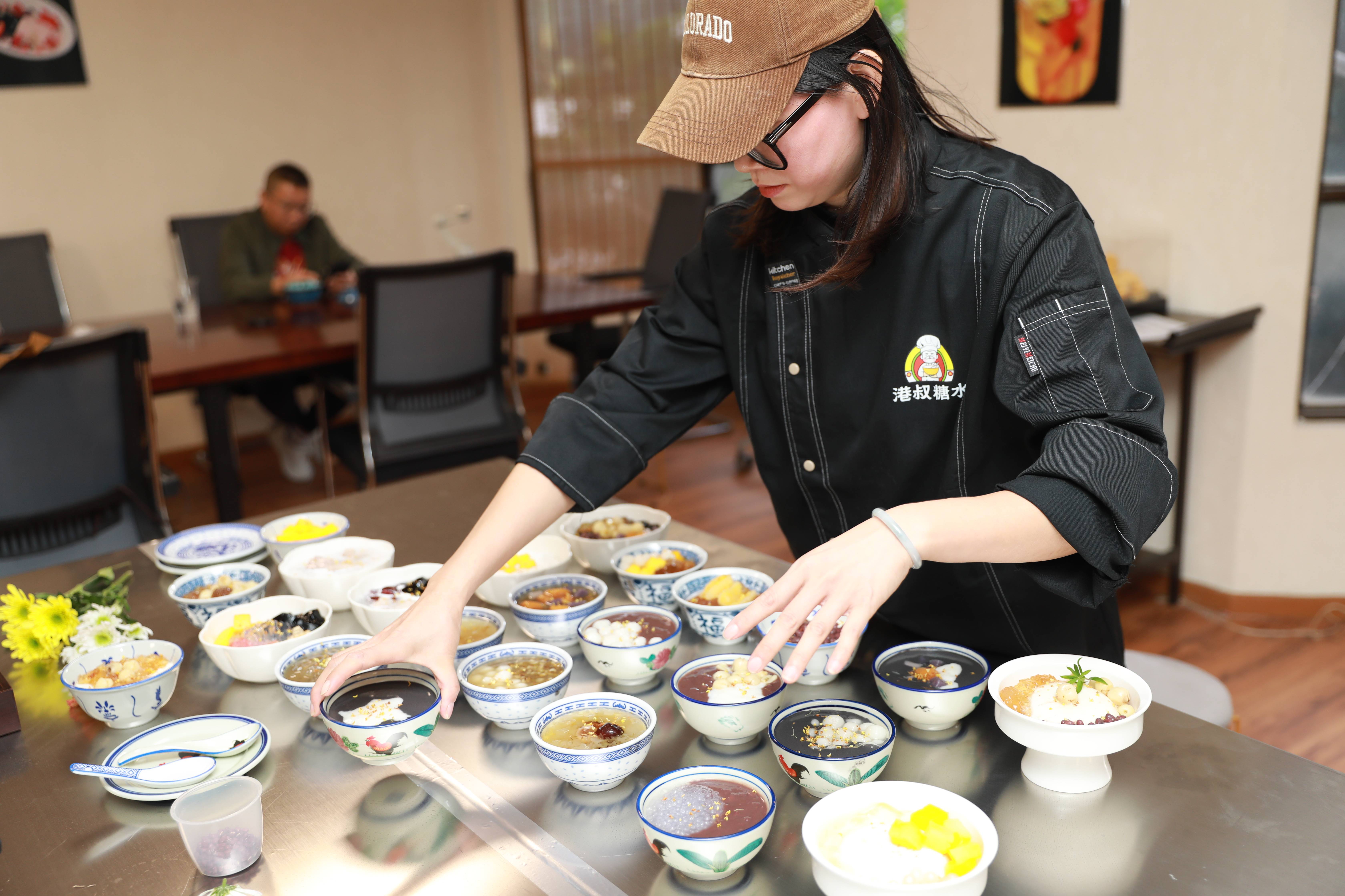 不同于传统技术培训,「港叔糖水」更懂创业者的需求——除了过硬的制作手艺,更需要“开店无忧”的保障。为此,品牌构建了全链条创业扶持体系:提供统一的老字号品牌形象与专业室内设计方案,让门店自带辨识度;通过厨具、调料集中采购实现标准化运营,守住品质底线;同步传授门店运营技巧与产品搭配策略,解决经营难题;后续还将持续更新百余种新品类,助力门店保持市场竞争力,为创业者打通从“学会技术”到“开好店”的完整路径。