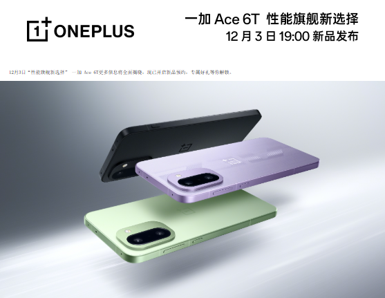 12月3日“性能旗舰新选择” 一加 Ace 6T更多信息将全面揭晓,现已开启新品预约,专属好礼等你解锁。