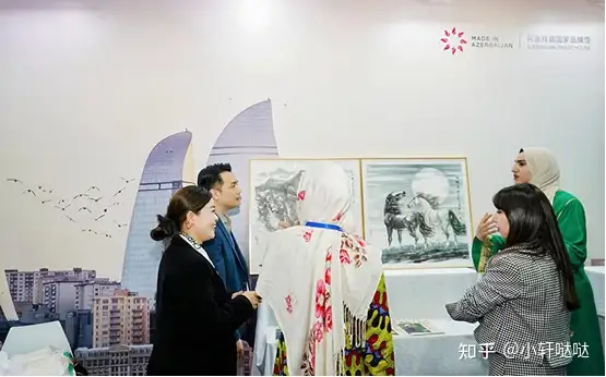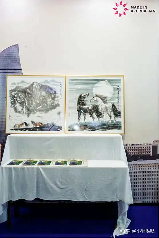 现场特设国际展区,著名艺术家、中阿文化友好交流大使邓南樵的两幅象征中阿友好的代表作亮相阿塞拜疆国家品牌馆,展出后获各级领导、国际友人及嘉宾观众一致认可与好评。