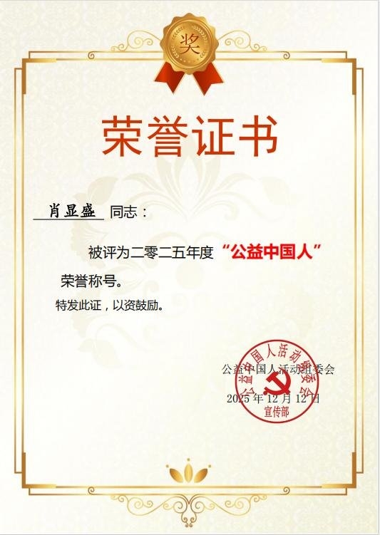 此前,肖显盛已先后荣获“中国好人”“最美巴东人”“公益领域标杆人物”等多项荣誉。面对新的殊荣,他依旧淡然谦逊:“只要身体还硬朗,我就会把公益这条路一直走下去。”这位年逾六旬的企业家,正以“以商养善”的实际行动,诠释着新时代民营企业家的责任与担当,让公益之光在武陵山深处熠熠生辉。