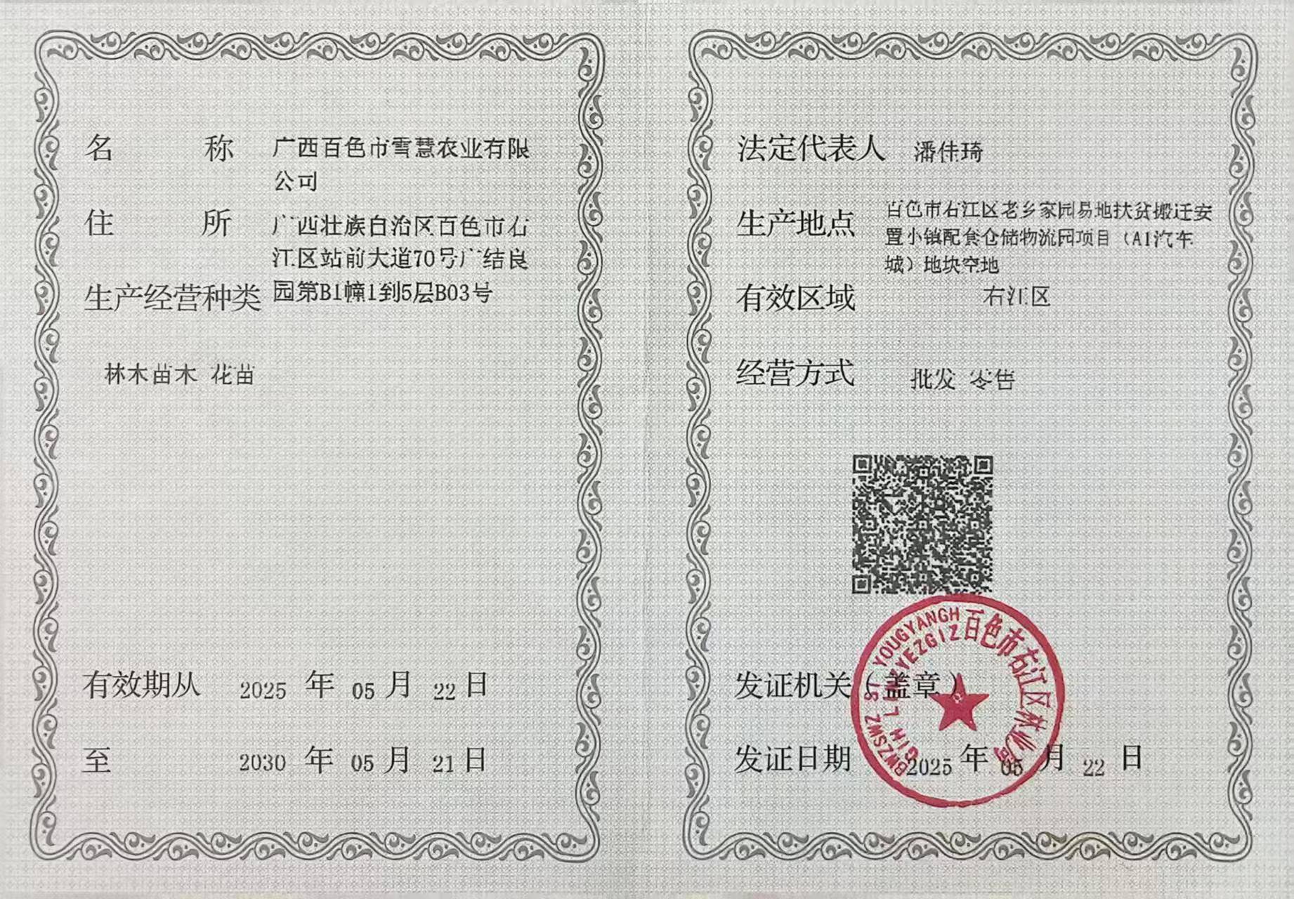 在育苗过程中,雪慧农业基地严格执行枝条来源备案制度,确保品种纯正,并主动邀请市、县林业部门专家现场指导,不断提升标准化、现代化水平,为全市油茶产业规模化发展夯实种苗根基。目前,该基地培育的500万株香花油茶苗已全面达标出圃,自12月进入销售旺季以来,累计签约订单超800万株。“我们的苗目前主要供应百色市各县(市、区),未来计划面向全国,并推广至东南亚。”广西百色市雪慧农业有限公司负责人王建鹏说。