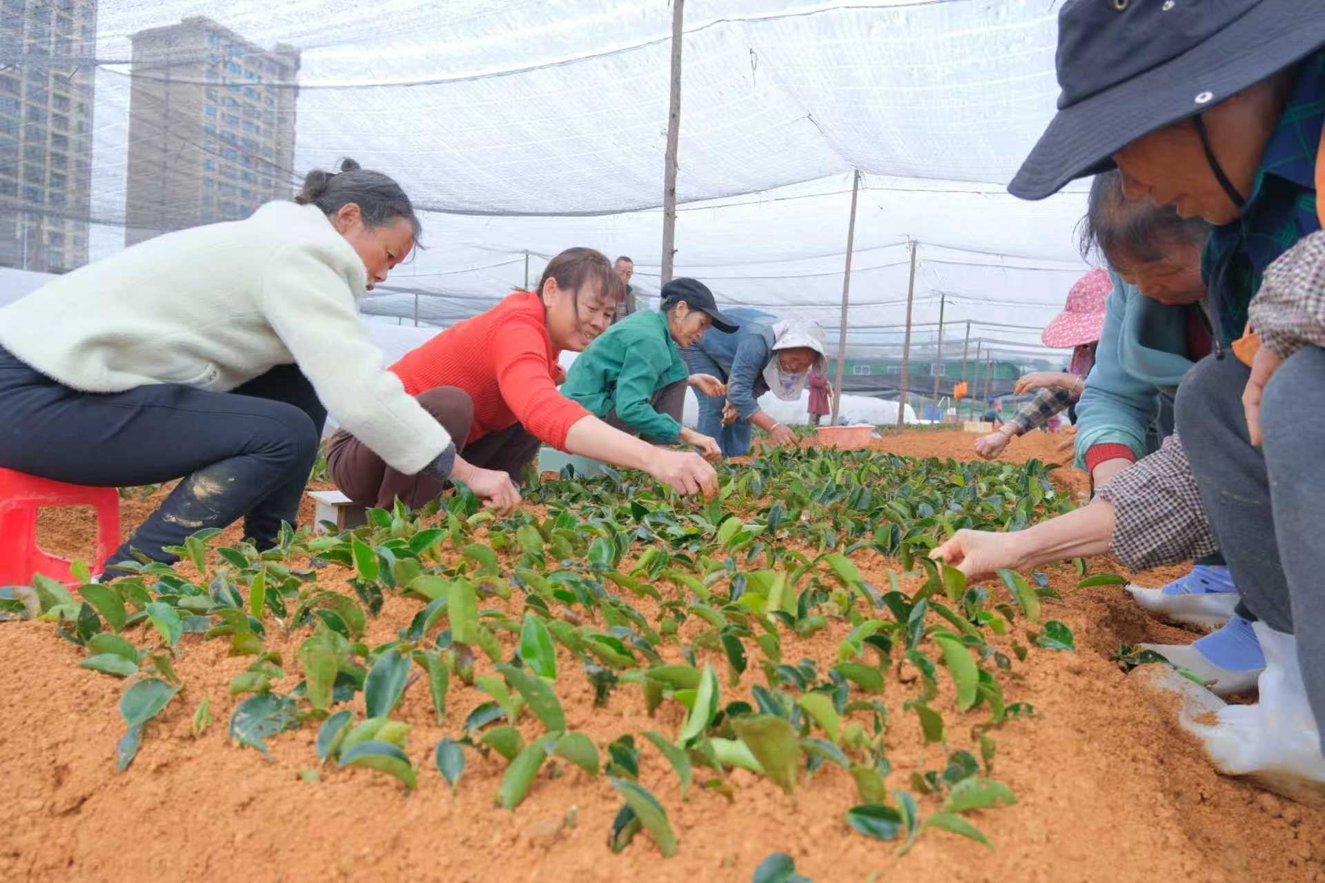 剪枝、扦插、浇水、搭棚……12月17日,广西百色市雪慧农业有限公司的香花油茶育苗基地里一派繁忙,几十名务工人员正有条不紊地进行育苗作业。他们大多来自周边社区,利用空闲时间前来务工,其中不乏脱贫群众。