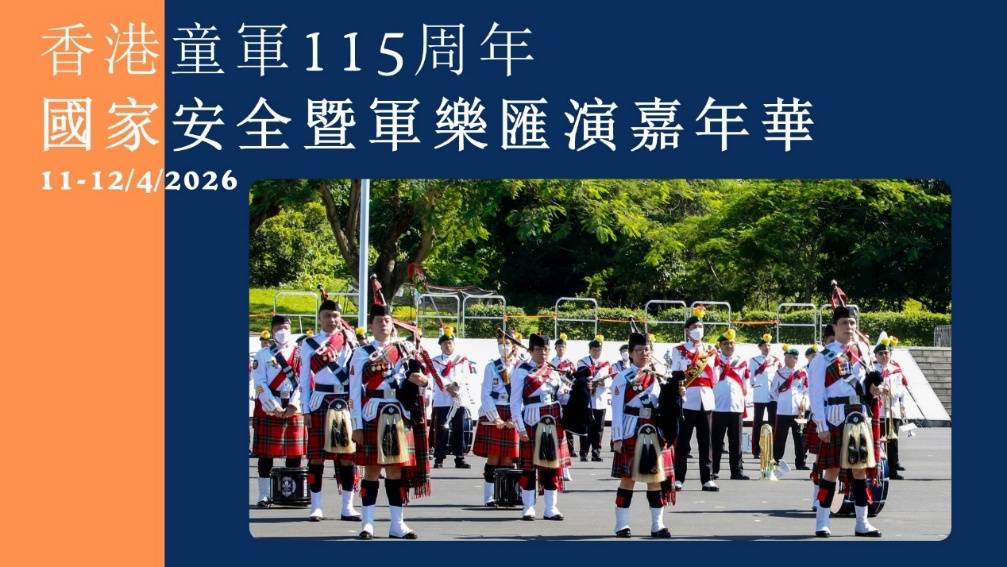 二、 香港童军115周年国家安全暨军乐汇演嘉年华(2026年4月11-12日): 本年度重点活动“童军国家安全日”将移师至维多利亚公园举行,规模空前。活动融合军乐汇演、历史展览、互动摊位、表演环节及特色活动,回顾百载发展历程,展示童军技能与特色,并向公众推广国家安全教育,欢迎内地同胞前来香港参与,免费门票派发详情容后公布。