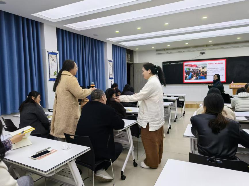 为了让老师们更好地内化方法,王老师带着老师们模拟了师生沟通、家校交流、同事协作等不同场景,亲身实践如何将“暴力沟通”转化为“非暴力沟通”。现场气氛活跃,笑声与思考并存。在角色互换和咨询师的精准点评中,我们真切地体会到,换一种说话方式,带来的结果竟是如此不同——从对抗走向合作,从误解走向理解。