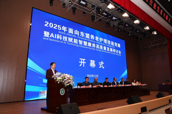12月19日至21日,在广西壮族自治区总工会、广西壮族自治区民政厅、广西壮族自治区人力资源和社会保障厅的指导下,由广西工业职业技术学院与广西菲到万家健康产业集团有限公司共同主办、林忠伟(广西)产教科咨政联盟协办的《2025年面向东盟养老护理技能竞赛暨AI科技赋能智慧康养高质量发展研讨会》,在广西工业职业技术学院武鸣校区顺利举办。来自国内外27个参赛单位共30支队伍、75 名选手同台竞技,展现养老护理专业风采,共话智慧康养产业发展未来。