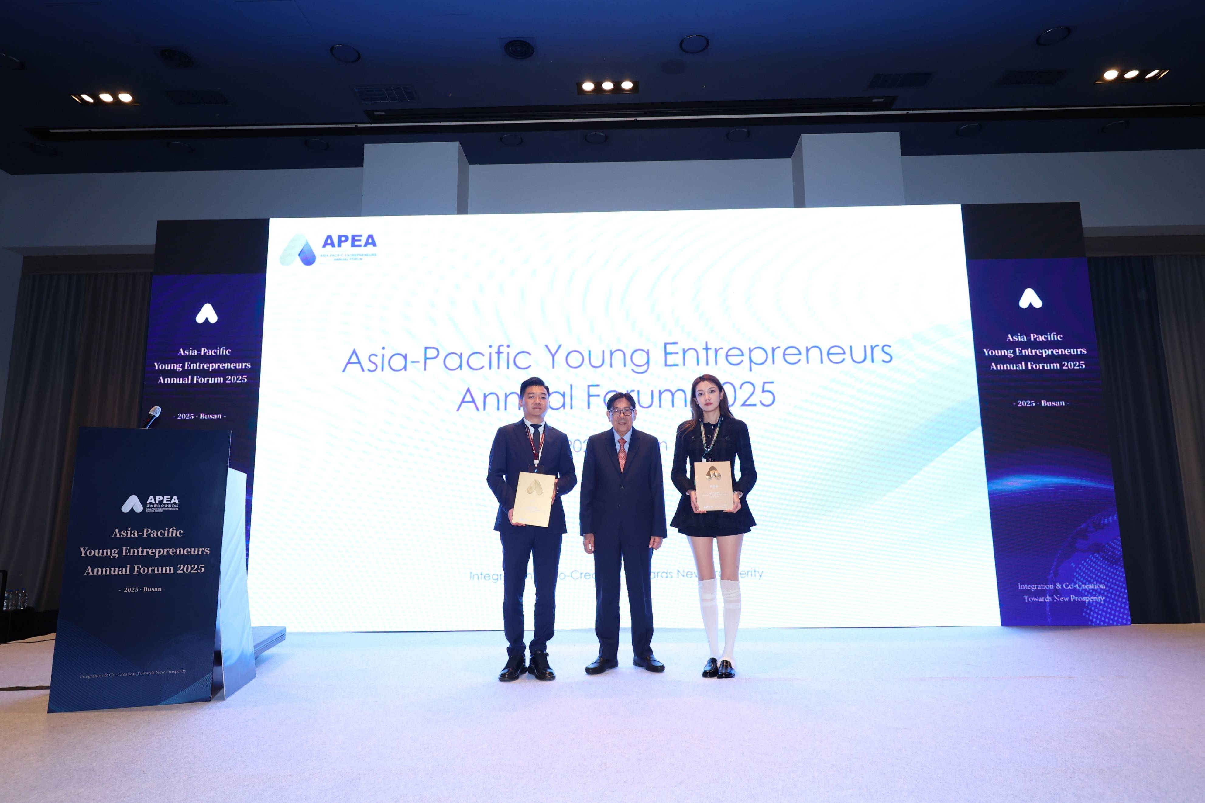 11月1日,在2025年APEC峰会期间举行的亚太青年企业家论坛(APEA)上,APEC秘书长爱德华多·佩德罗萨、APEC工商咨询理事会秘书长安东尼奥·巴西里奥、国际商会(ICC)秘书长约翰·丹顿出席致辞。授予中泰基业投资集团有限公司董事长CEO潘巧,“亚太青年企业家理事会理事”。