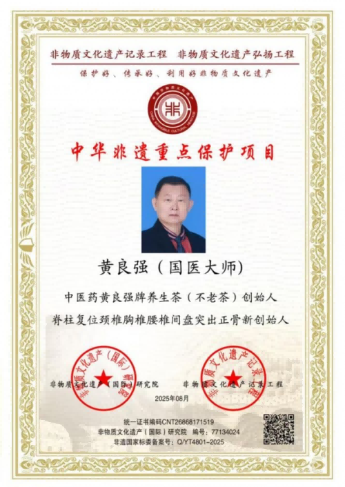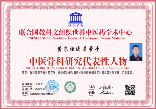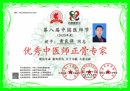 为全面推动大健康产业发展,响应领导人总书记“没有全民健康,就没有全面小康”和“要倡导健康文明的生活方式,树立大卫生、大健康的观念,把以治病为中心转变为以人民健康为中心,建立健全健康教育体系,提升全民健康素养。”以及“要秉持人类卫生健康共同体理念,推动构建人类命运共同体”的号召。为深入挖掘临床一线及基层中医药服务能力建设中涌现出的先进典型,弘扬“大医精诚”精神,讲好中医故事,传递中医正能量,使百姓更加爱中医、信中医、受惠于中医。迎国庆特别报道国际权威中医正骨治疗,颈椎病、头晕、头疼、胸闷、肩围炎、腰椎间盘突出、坐骨神经疼、痛风等医学专家——黄良强。